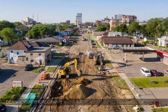Last week I did a couple of industrial photography shoots for Elcor Construction of the Broadway project they are working on. This is a huge overhaul of Broadway which is the main drag going north and south through downtown Rochester, Minnesota. There will be bike lanes, plantings, a center turning lane, nice bus stops, benches and so on. They’ve been working on this for a couple of months now and will continue throughout the year.