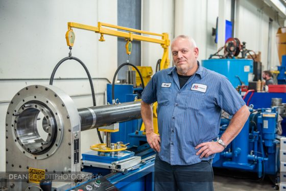 Aggressive Hydraulics was founded in 2002 and specializes in the design, manufacture and assembly of custom hydraulic cylinders. They have a large facility in Cedar, Minnesota, where all of this takes place. I spent the day going from one area to anther on a very tight schedule trying to get as much shot for them as possible without sacrificing quality. The key to this is proper planning, preparedness and a good assistant. With a couple of ProFoto battery-powered strobes on rolling stands, my Nikon D810 body on a tripod and my laptop and other gear on a cart we were able to move around pretty efficiently with very little down-time between shots.